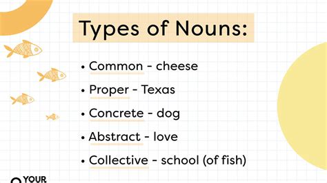 5 types of noun chart with examples