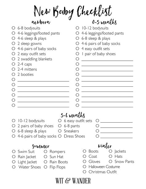 baby clothes checklist