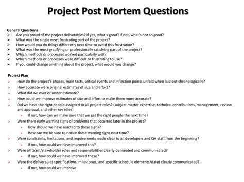 event post mortem questions