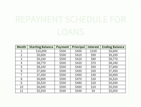 sample of repayment schedule