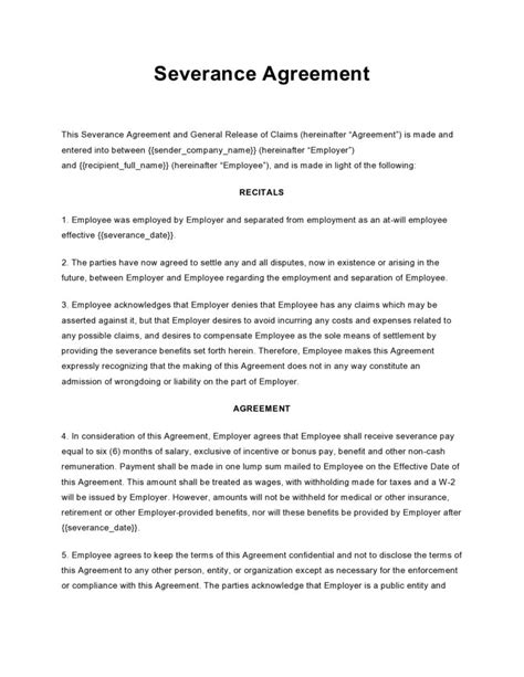 severance agreement examples