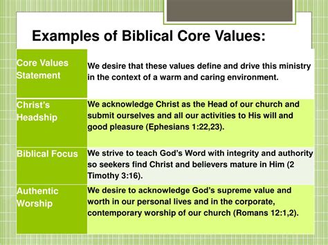 what are some biblical values