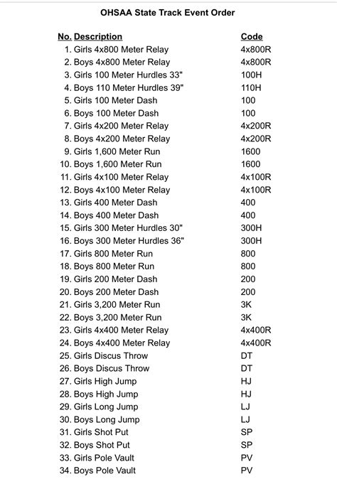 winter track event order